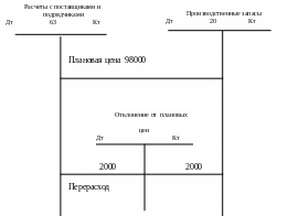 Допустим, что в приведенном примере стоимость заготовленных материалов в плановых ценах равна 98000 грн. Возникшие при этом отклонения от плановой стоимости составляют 2000 грн. Это обстоятельство получит следующее отражение на счетах: