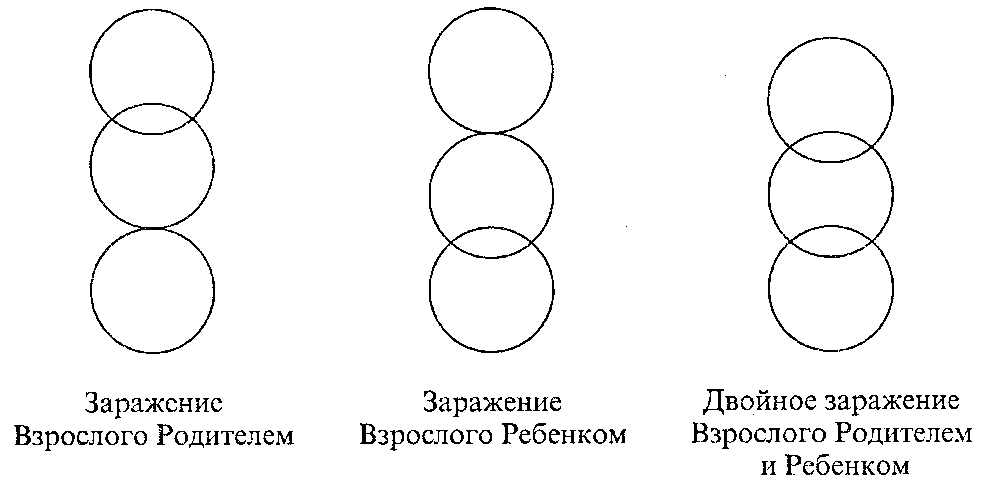 Контаминации (заражения). Взрослый часто в той или иной степени заражен Родителем и Ребенком и как бы исключен из реального поведения.
