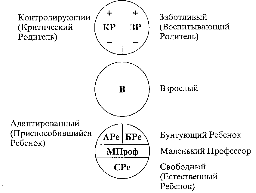 Эго-состояние Родителя, представленное на схеме 4, делится на две части: Контролирующего Родителя (КР), которого некоторые авторы называют Критикующим, и Заботливого Родителя (ЗР). Его же иногда называют Воспитывающим.
