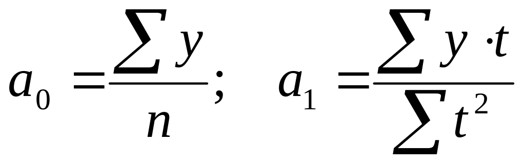 Систему уравнений можно упростить, если t подобрать так, чтобы сумма была равна 0, т.е. начало отсчета времени перенести в середину рассматриваемого периода, то