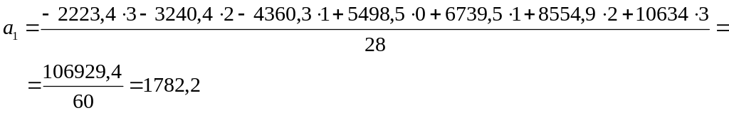 Коэффициенты а0 ,а1 вычислим, применив метод наименьших квадратов, т.е. разрешив систему уравнений: