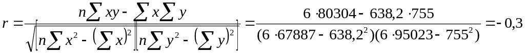 Для выявление статистической связи между этими показателями вычислим коэффициент корреляции по формуле: