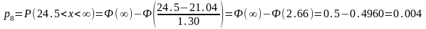 8. В случае принятия гипотезы найти интервальные оценки параметров нормального закона распределения (доверительную вероятность принять равной 0,95).