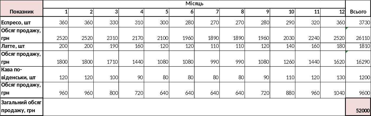Прогноз обсягів продажу на перший рік (з помісячним розподілом)