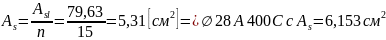 Г) Визначаємо площу поперечного перерізу одного стрижня арматури та відповідно сортаменту визначаємо його діаметр:
