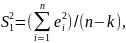 n-k - число степеней свободы выборочных дисперсий остатков;