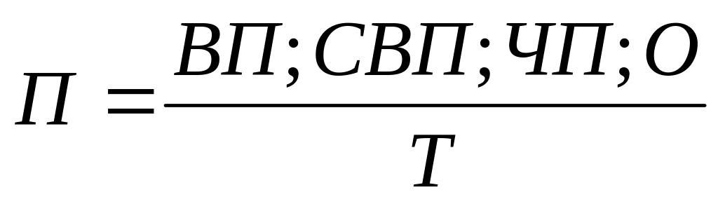 Уровень производительности труда или трудоотдачи рассчитывают делением количества соответствующего вида продукции в натуральном или денежном выражении или объема выполненных работ (О) на количество затраченного в производстве рабочего времени.