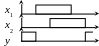 6. Якому логічному елементу притаманні наступні діаграми вихідних сигналів (у) при заданих вхідних (х1, х2) (назва та позначення)?