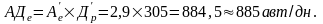 в – коефіцієнт випуску парку (за даними АТП) з перспективою зростання 0,725
