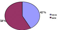 По половому признаку среди опрошенных подростков девушек - 58%, парней – 42%.