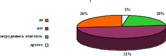На вопрос о том, готовы ли они обращаться в подобные службы 26% ответили, что готовы обращаться за помощью в службы помощи и к психологам. Сравнение с предыдущей диаграммой подтверждает вывод о недостатке информации о данных службах. 20% затруднились ответить – «закрытые» подростки – неготовые дать однозначный ответ, находящиеся в состоянии неопределенности, неуверенности в том, что они готовы рассказать о своих проблемах кому-то постороннему.