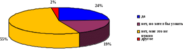 Здесь мы наблюдаем, так называемое неосознанное подражание – 17%, протест – 61% ответили «нет», в редких случаях осознанное подражание – 15% «да».