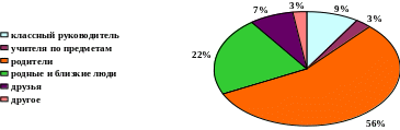 Представленные данные еще раз подтверждают тот факт, что, несмотря на частое внешнее отрицание авторитета взрослых, на подростка самое сильное влияние оказывают именно взаимоотношения в семье и в школе, включая взаимоотношения со сверстниками.
