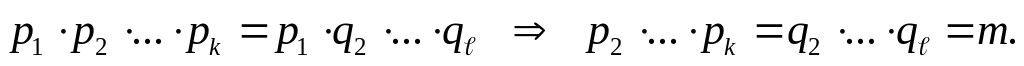 2. Однозначность разложения. Для доказательства однозначности разложения с точностью до порядка следования сомножителей также применим метод математической индукции.