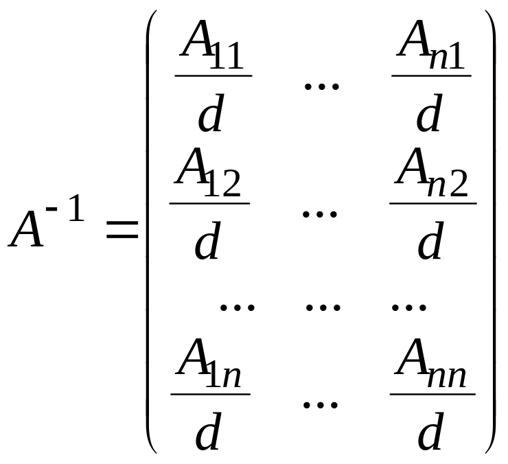 Из равенства (1) видно, что если d≠0, т.е. матрица А невырожденная, то разделив все элементы матрицы А* на d, получим матрицу А-1: