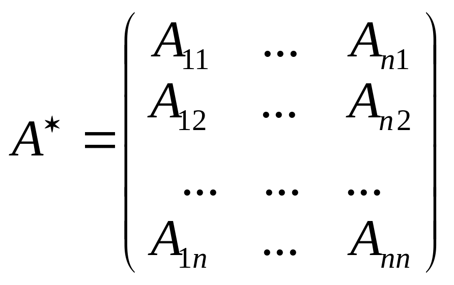 Рассмотрим определитель d матрицы А и для каждого элемента aij найдем его алгебраическое дополнение Aij. Из этих алгебраических дополнений составим следующую матрицу: