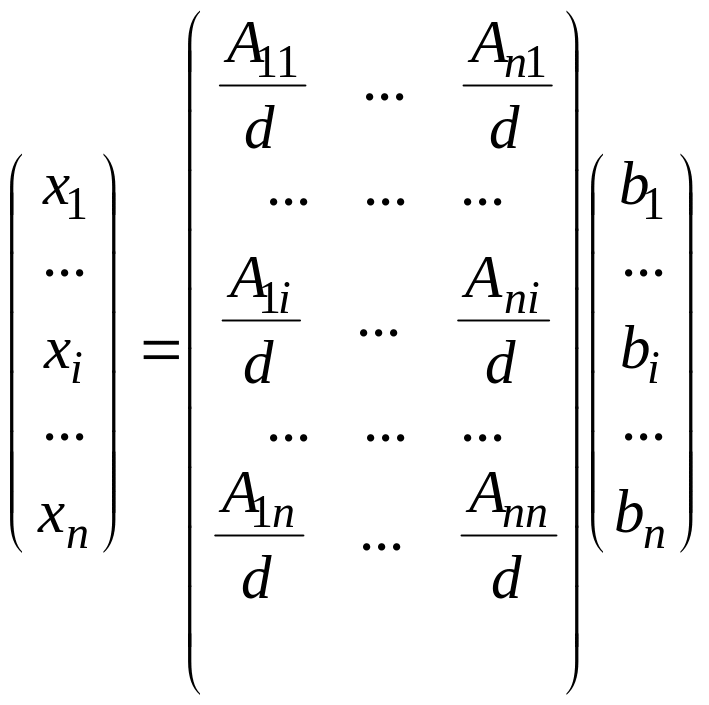 Нетрудно видеть, что система (7) в матричном виде запишется следующим образом: АХ=В. (8)