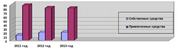 Более наглядно динамику роста структуры собственных и привлеченных средств АО Банк ВТБ за 2011-2013 годы можно увидеть на рисунке 7.