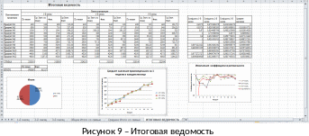 В итоговой ведомости собраны все данные полученные мною в ходе решения поставленной задачи средствами MS Excel. Данный лист отличается от предыдущих итогов тем, что здесь формулы для вычисления не нужны. На данном листе показаны все итоги вместе с необходимыми графиками. Итоговая ведомость необходима для реализации комплексного анализа исходных и полученных данных. На Рисунке 9 представлена итоговая ведомость.