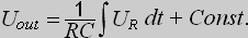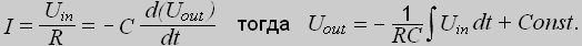 В итоге получилось, что выходное напряжение Uout прямо-пропорционально интегралу напряжения на выводах резистора, следовательно, и входному току Iin. Постоянная составляющая Const не зависит от номиналов элементов цепи.