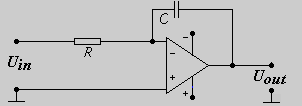 Рассмотрим в качестве интегратора Операционный Усилитель (ОУ) по схеме, показанной на рисунке.