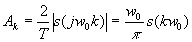 т.е. комплексные амплитуды периодической функции с периодом Т можно определить по спектральной характеристике непериодической функции такой же формы, заданной в интервале [0,Т]. Сказанное справедливо и по отношению к модулю спектральной плотности: