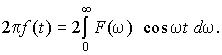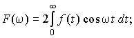 Для сигнала f(t), являющегося четной функцией времени f(– t) = f(t), когда спектральная плотность F(j) — вещественная величина F(j) = F(), оба интеграла можно переписать в тригонометрической форме косинус-преобразования Фурье: