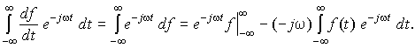 Полученные формулы позволяют найти Фурье-изображение производных функции по ее известному спектру. Эти формулы удобно также применять в случаях, когда в результате дифференцирования приходим к функции, Фурье-изображение которой вычисляется более просто. Так, если f(t) — кусочно-линейная функция, то ее производная df/dt — кусочно-постоянная, и для нее интеграл прямого преобразования находится элементарно. Для получения спектральных характеристик интеграла функции f(t) ее изображение следует разделить на j.