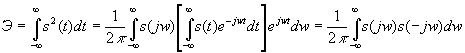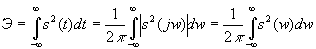 Из этого соотношения следует, что огибающая сплошного амплитудного спектра непериодического сигнала и огибающая амплитуд линейчатого спектра периодического сигнала совпадают по форме и отличаются лишь масштабом. Вычислим теперь энергию непериодического сигнала. Умножая обе части неравенства (14) на s(t) и интегрируя в бесконечных пределах, получим: