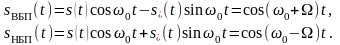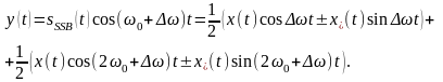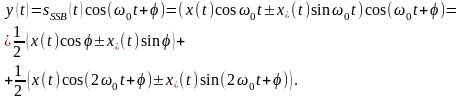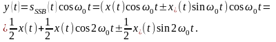 Результат умножения содержит два слагаемых. Первое – модулирующий сигнал, второе – однополосный сигнал на удвоенной несущей частоте.