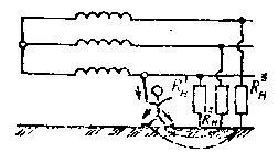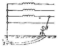 Другаявозможная схема однофазного включения — в сеть с изолированной нейтралью. При этом ток, проходящий через тело человека, возвращается к источникутока через сопротивление изоляции фазних проводов, которое имеет большую величину. При таком включении