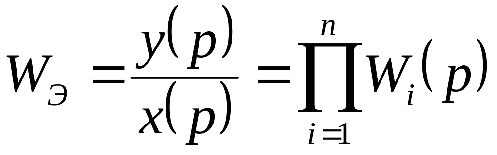 Передаточная функция последовательно соединенных звеньев равна произведению передаточных функций всех звеньев. Это значит, что их можно заменить одним эквивалентным звеном с передаточной функцией Wэ(p).
