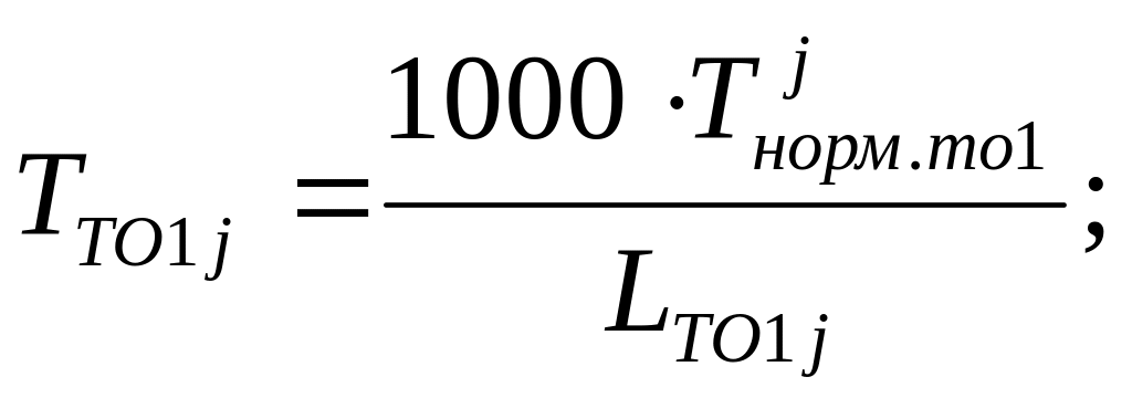 Тто1j, Тто2j, Ттрj – нормативная трудоёмкость работ соответственно по техническому обслуживанию N1, N2 и текущему ремонту на 1000 км пробега автомобиля j-ой марки, чел-ч;
