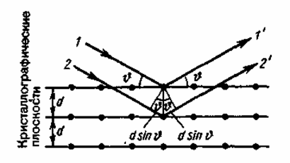 т. е. при разности хода между двумя лучами, отраженными от соседних кристаллографических плоскостей, кратной целому числу длин волн А, наблюдается дифракционный максимум.
