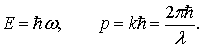 По гипотезе де Бройля движущейся частице, обладающей энергией и импульсом , соответствует волновой процесс, частота которого равна--