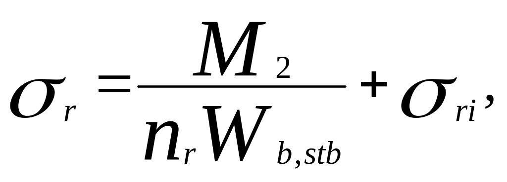 где М=М1+М2 — полный изгибающий момент;