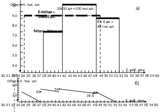 Намечается интенсивность поставки, устанавливаются сроки поставки материалов (начало, окончание) и ее продолжительность.