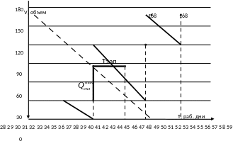 Рис. 4. Общий вид интегрального графика при расходовании и поставке материалов с одинаковой интенсивностью