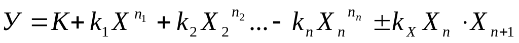У = К + k1W1 + k2W2 + k3W3 – k4W4 + kXΣW + k5Q1 + k6Q2 + k7Q3 – k8Q4 + kyΣQ +