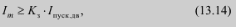где Kз – коэффициент запаса, учитывающий бросок апериодической составляющей пускового тока, принимаемый равным 1,3–1,5 – для электромагнитных расцепителей и 1,1 – для электронных расцепителей.