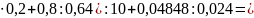 2)(15,36-4,36 (20,74:6,8-7,6:19)) 0,25=0,9515