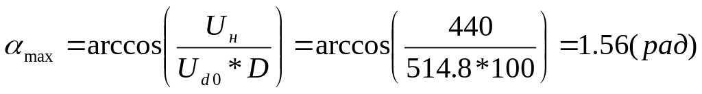 Имеем реверсивный привод с диапазоном регулирования D = 100. Определяем наибольший угол регулирования: