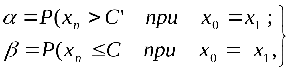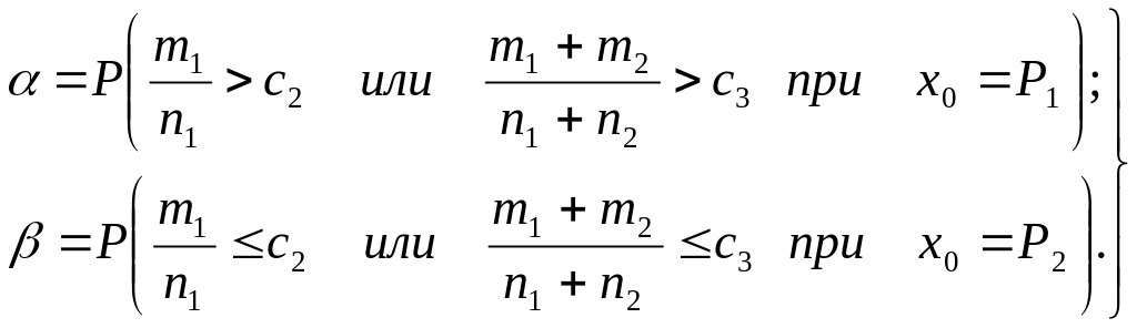 Пользуясь введенными определениями, получаем, что вероятности риска изготовителя () и риска заказчика () могут быть записаны в виде следующих уравнений: