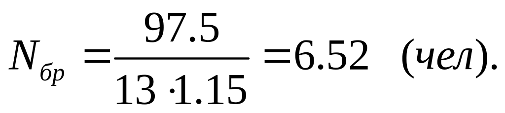 III разряд - N=30.5/(13*1.15)=2.04, принимаем N=2 чел.