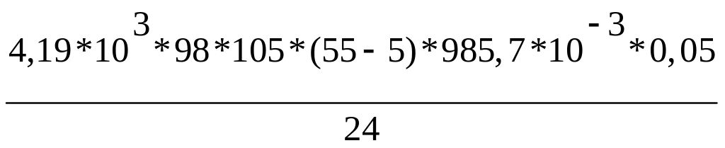 4 = 4,19*103*0,986*9,53*(55 - 5)*(1 + 0,25)*10-3 =2,46 кДж/ч