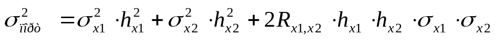 hx1 і hx2 – відповідно дольові коефіцієнти інвестицій в акції х1 і х2 в портфелі,
