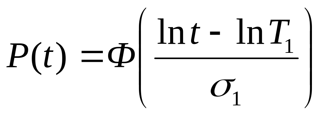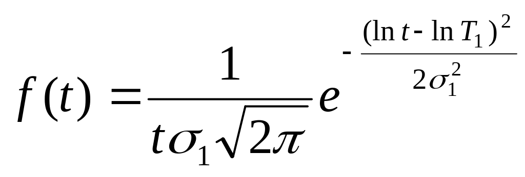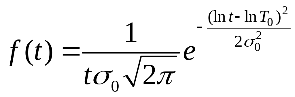 Логарифмически нормальный закон распределения может быть применен для описания случайного времени наработки (срока службы) до отказа во многих случаях, особенно в тех, когда дисперсия выходного параметра возрастает по мере старения машины.