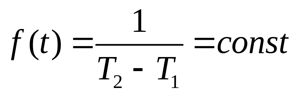 7 Равномерное распределение. При данном распределении все события (отказы) совершаются за отрезок времени от t = T1 до t = T2, и вероятность их появления одинакова для любых одинаковых промежутков времени внутри данного отрезка.