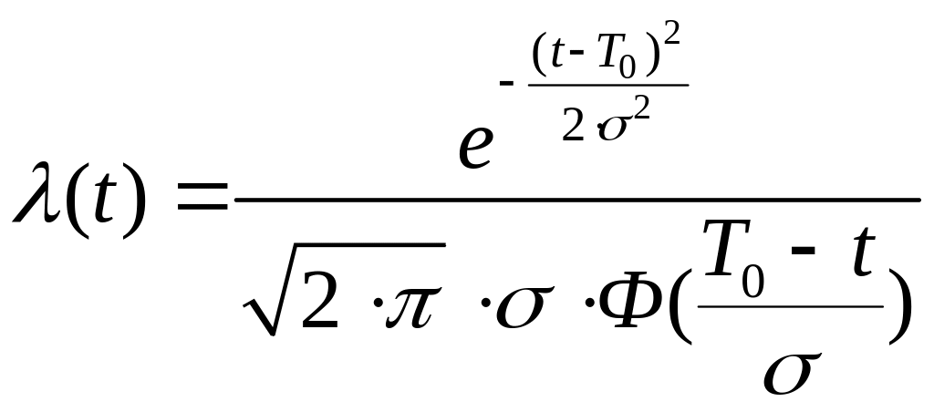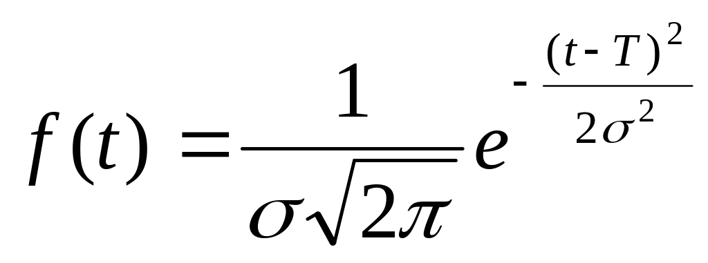 Нормальная плотность распределения отлична от нуля при t < 0. Этот недостаток несущественен, если Т0 >> σ. При этом условии частью кривой распределения при t < 0 можно пренебречь. Если это условие не выполняется, то использование нормального распределения приводит к погрешностям.
