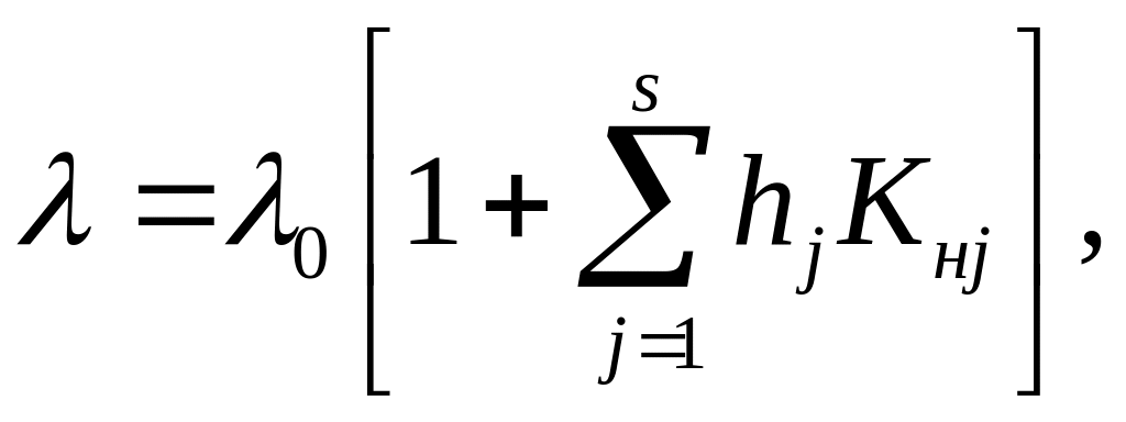 где λj — среднестатистическая интенсивность отказов j-го элемента; Nj — число элементов j-го типа; т — число типов элементов.